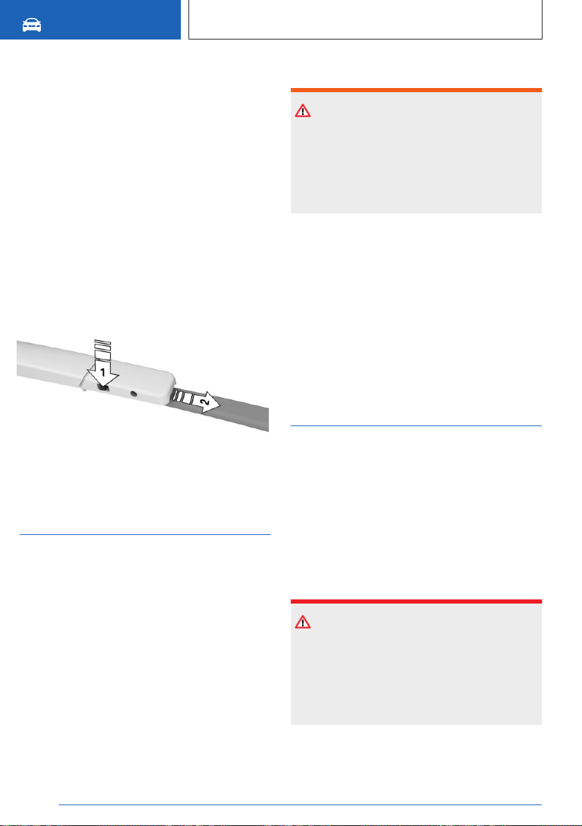 unten drücken, Pfeil 1, und das Wischerblatt