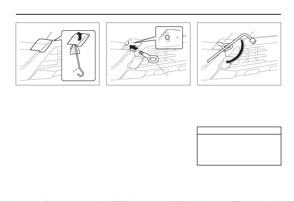 3) Die Abschleppöse (1) von Hand ein-