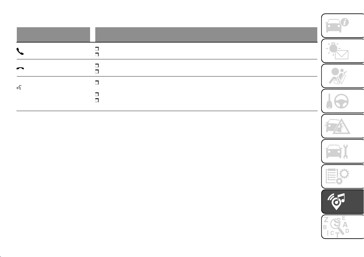 ZUSAMMENFASSENDE TABELLE DER LENKRADBEDIENTASTEN