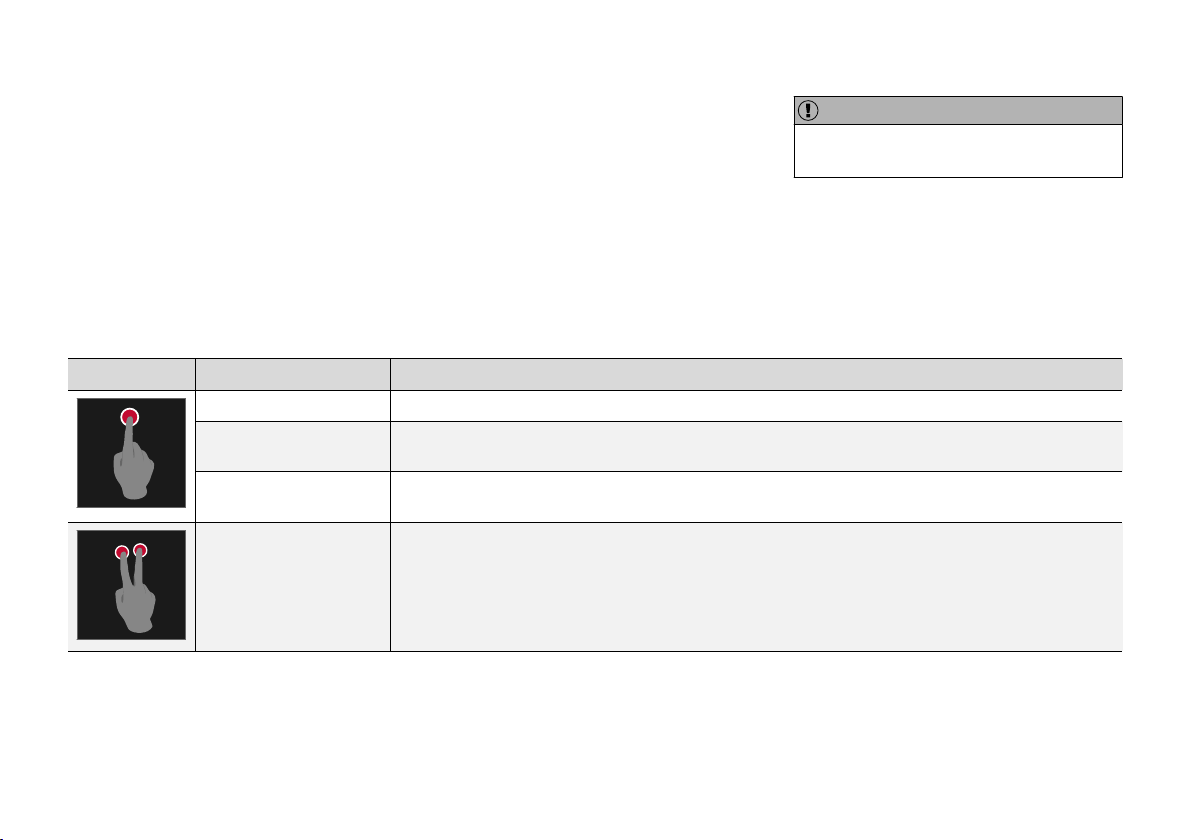 Gesten zur Bedienung des Touchscreens aufge-